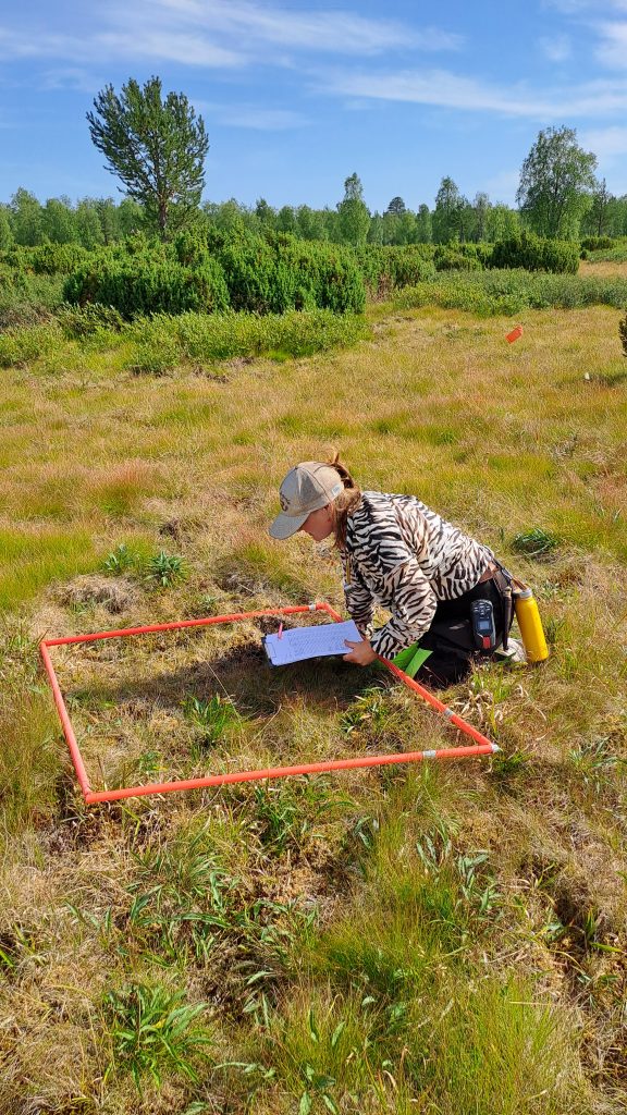 Lauralotta Muurinen estimating plant species coverage at Pierkuli