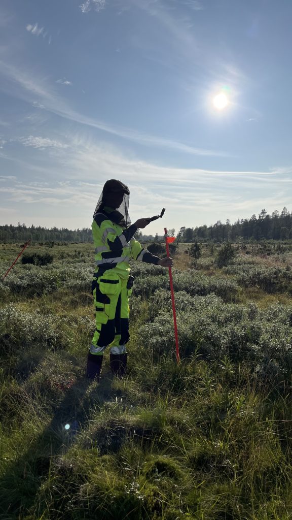 Led by Pinja Lindgrén (VTT), a total of 62 sampling plots were established using stratified random sampling. Each plot was located with a handheld N80T South GNSS tablet providing 5–10 cm accuracy, later refined with a survey-grade RTK GPS.