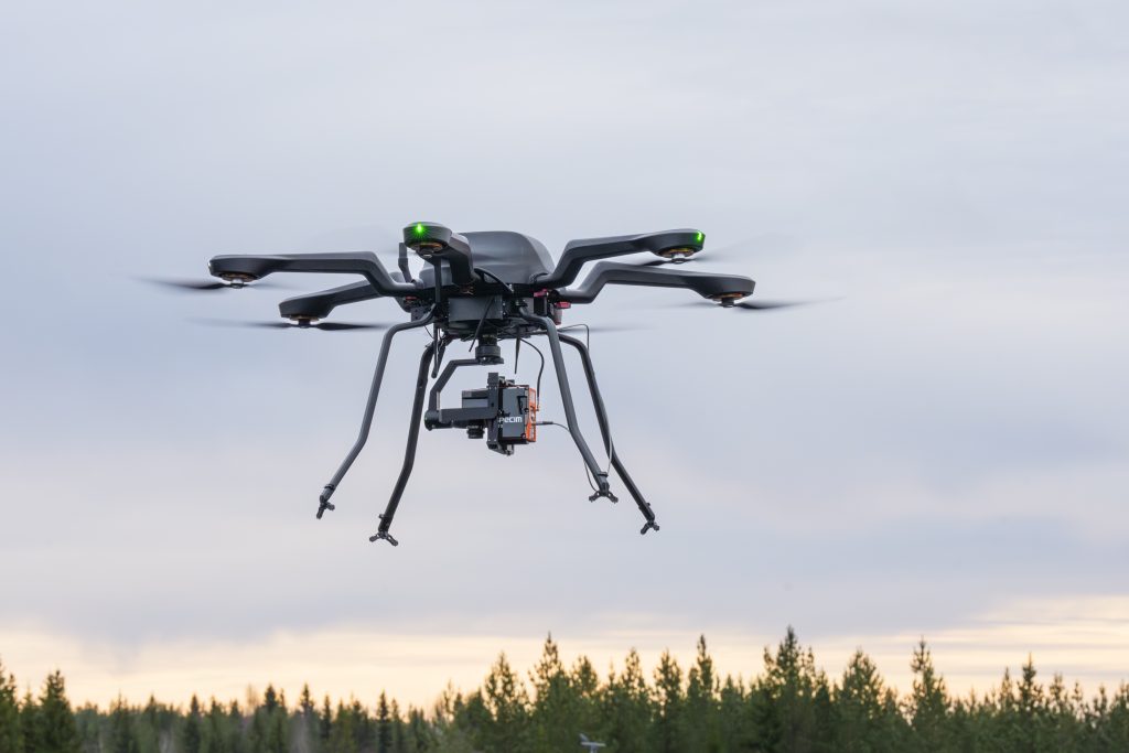 VTT’s drone hyperspectral imaging system is airborne performing an automated imaging task.